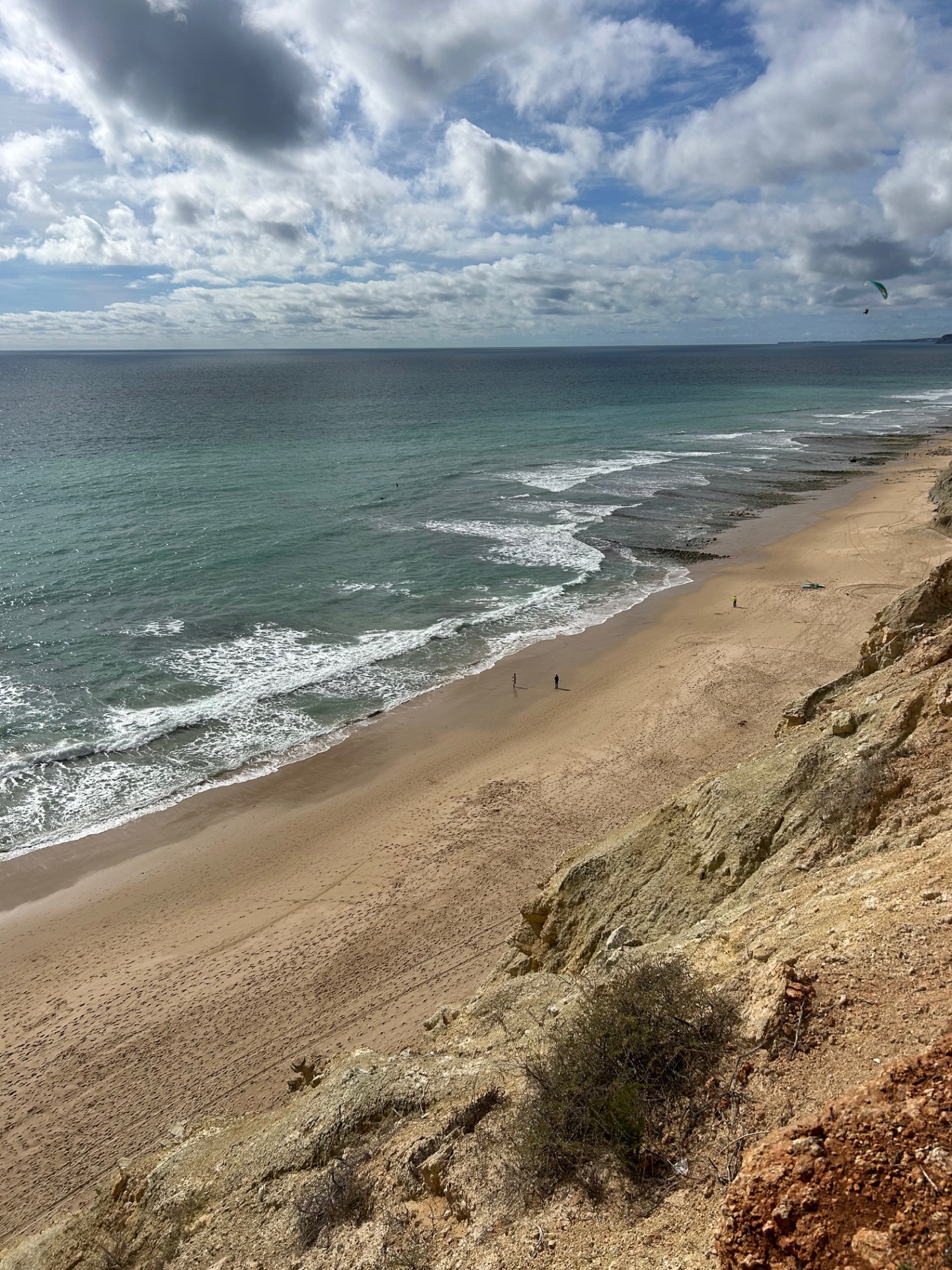 Nakoupila jsem si vodu, 2 jablka a hurá na pobřeží. První část hodně turistické po chodníčcích - Ponta da Piedade Boardwalk s krásnými výhledy na oceán. Po pár kilometrech narazím na dlouhou pláž Praia do Porto de Mós, Rybářská stezka vede nad útesy nad touto pláží a ty výhledy, to je sen. A když vysvitne slunce správným směrem, barvy oceánu jsou neskutečné. Po 20 kilometrech mě vítá městečko Luz s klidným místem na svlažení unavených nohou. Ubytuji se v báječném apartmánu Casa da Luz.