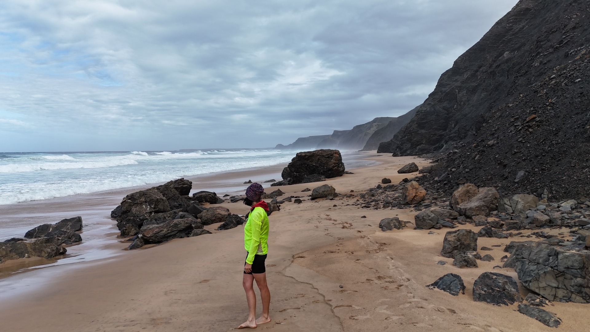 Vyrážím ještě za tmy, dnešní úsek je dlouhý a podle oficiálních stránek Rota Vicentina je tento úsek označený jako "těžký". První úsek do městečka Aljezur je nekonečný. Je neděle, celé městečko ještě spí, cesta pokračuje pod Castelo de Aljezur a šotolinovou cestou mě dovede do městečka Rogil, kde dokupuji jídlo a začíná zábavnější část dnešní etapy. Za pár kilometrů už je oceán na dohled a víceméně se od oceánu do konce dnešní cesty nevzdálím. Bouřící oceán je slyšet několik kilometrů daleko, žádné podcasty, žádná hudba do uší, léčivé je pro mě ticho, vůně borových hájů, slaný vzduch a rozbouřené pobřeží. Poslední kilometry jsou opět hodně v písku, ale tím, že se již blížím k cíli, nespěchám, tak se jde vlastně moc hezky. Pořád čekám, zda nepříjde nějaké šplhání po útesech, ale nic takového se nekoná. Dnešek končím na pláži Praia de Odeceixe Mar, kde kotvím v pokojíku s výhledem na oceán - Casa Dorita.
