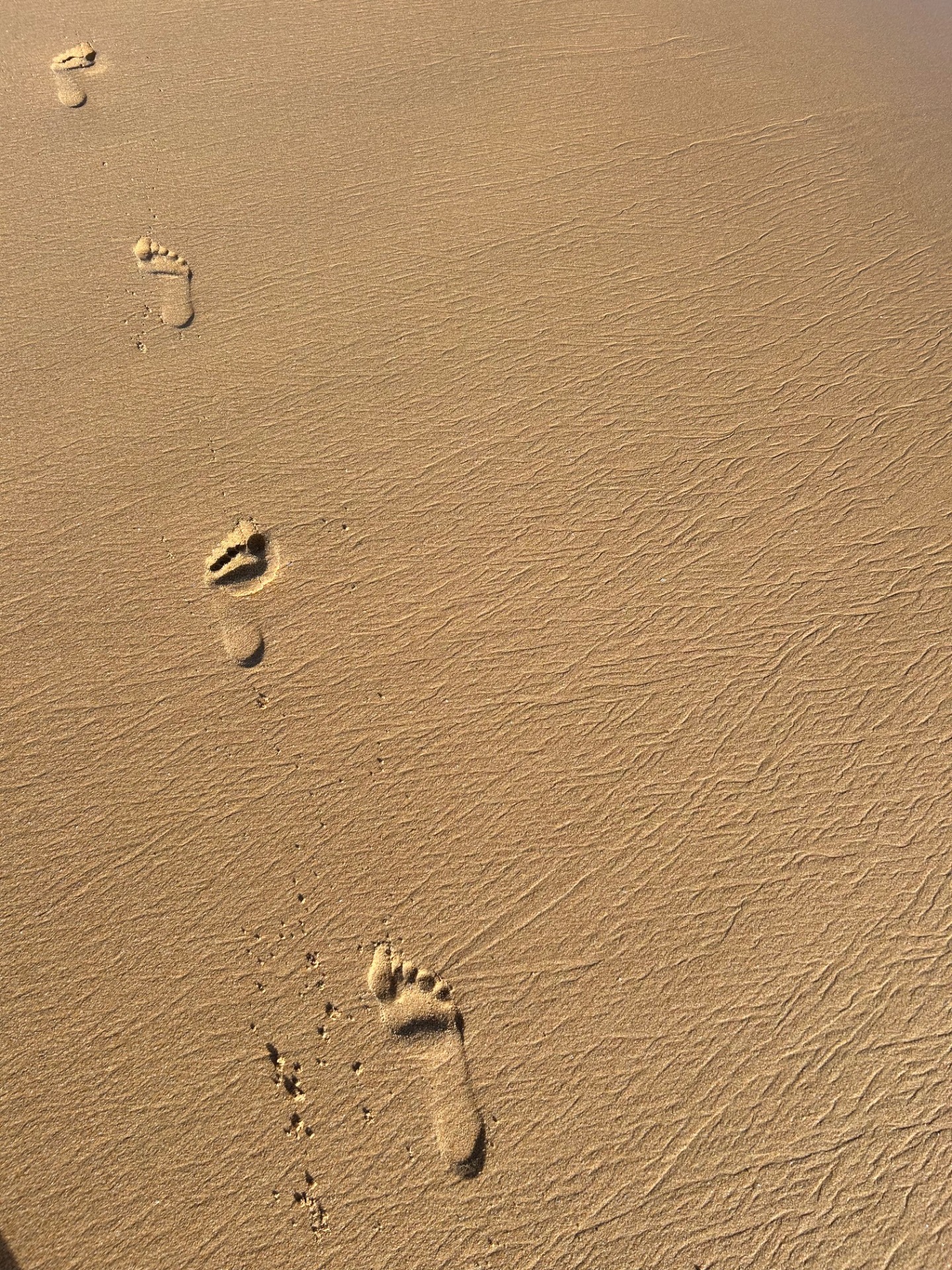 Cesta podél útesů, kde se oceán tříští o skály, a každý krok je hra s větrem, pískem i únavou.