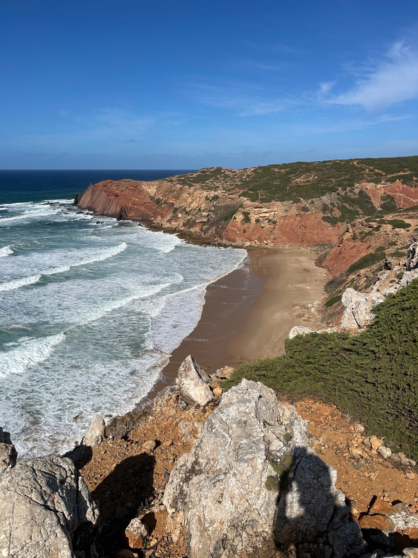 První den si nechávám na přejezd z Lisabonu do Sagrese včetně nejkrásnějších spotů na Algarve, Beach Castelejo. Nádherná divoká pláž, která je v létě obklopená surfaři. Dneska bez lidí, bez surfařů, bez aut na parkovišti. Jen já, vítr, vlny a oceán. Vyhlídka Miradouro de Cordoama. Velké wow.