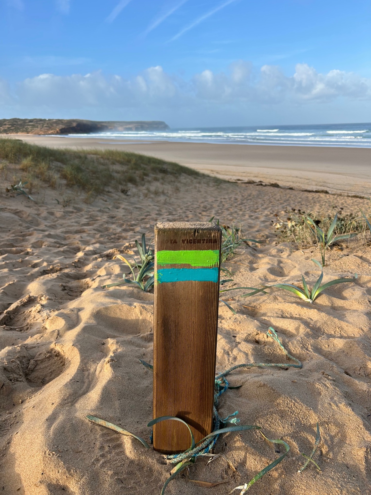 Rybářská stezka /Rota Vicentina nebo Fishermens trail = pobřežní dálkovka v 226,5 km v 13 etapách, oficiálně od São Torpes u Sines do Lagos.
